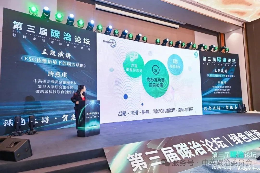 在2025上海国际碳中和博览会期间,第三届碳治论坛于6月7日在上海虹桥圆满召开。本届论坛主题为“绿色出海·智能启航 | 共建全球可持续价值链”,围绕“绿色出海、人工智能、绿色金融与ESG、双碳治理”等前沿议题传播国际经验、标杆案例,发布国际标准和碳治成果。