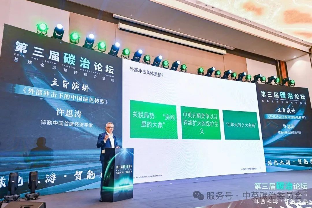 德勤中国首席经济学家许思涛发表了题为《外部冲击下的中国绿色转型》的主旨演讲。许思涛指出贸易摩擦与地缘风险虽扰动短期,但中国能源转型承诺及清洁技术出口(光伏、风电、新能源汽车)逆势增长,未来需通过科技降本与碳价机制降低“绿色溢价”,平衡产业政策与市场力量。