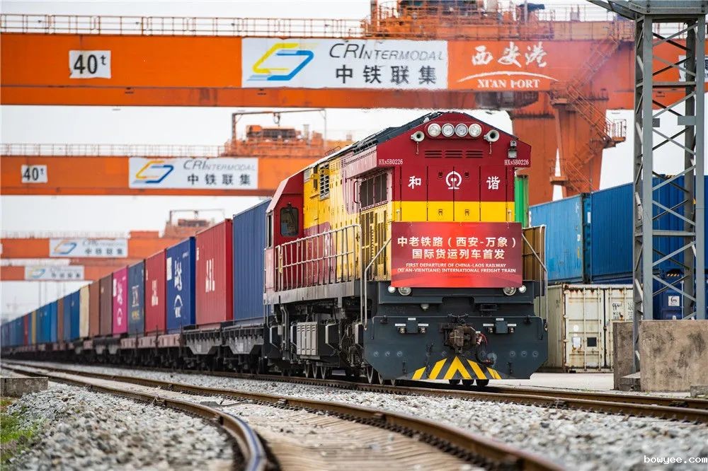 4月22日,陕西西安首趟中老铁路(西安至万象)国际货运列车从西安国际港站发车。新华社发(刘翔 摄)